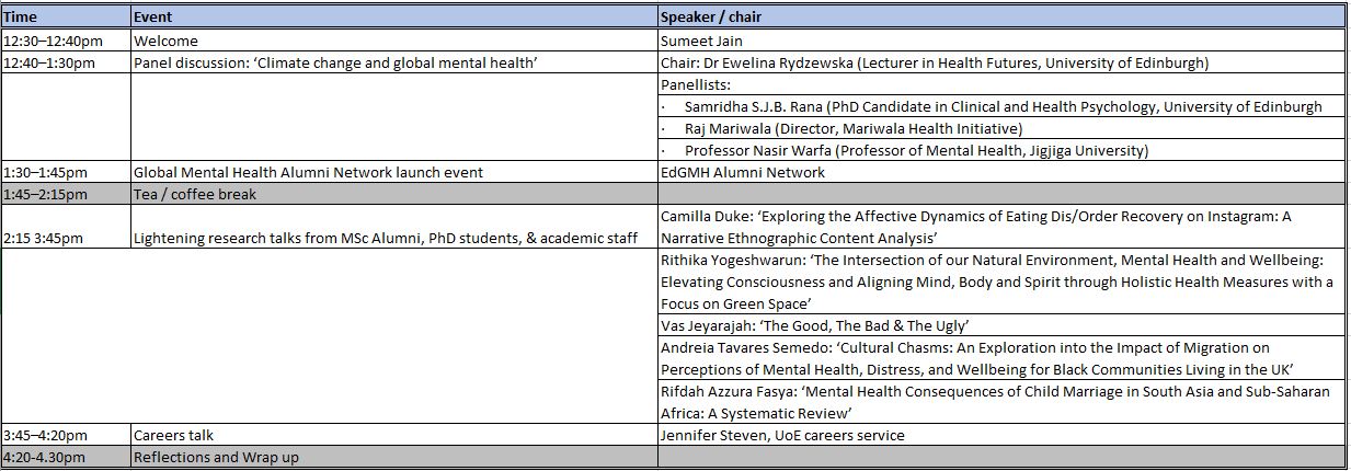 If you are a GMH&S alumni or current PhD student in a related area and are interested in doing a short talk (4 to 6 minutes) based on current/previous global mental health research please fill this form in by Sept 27th.
