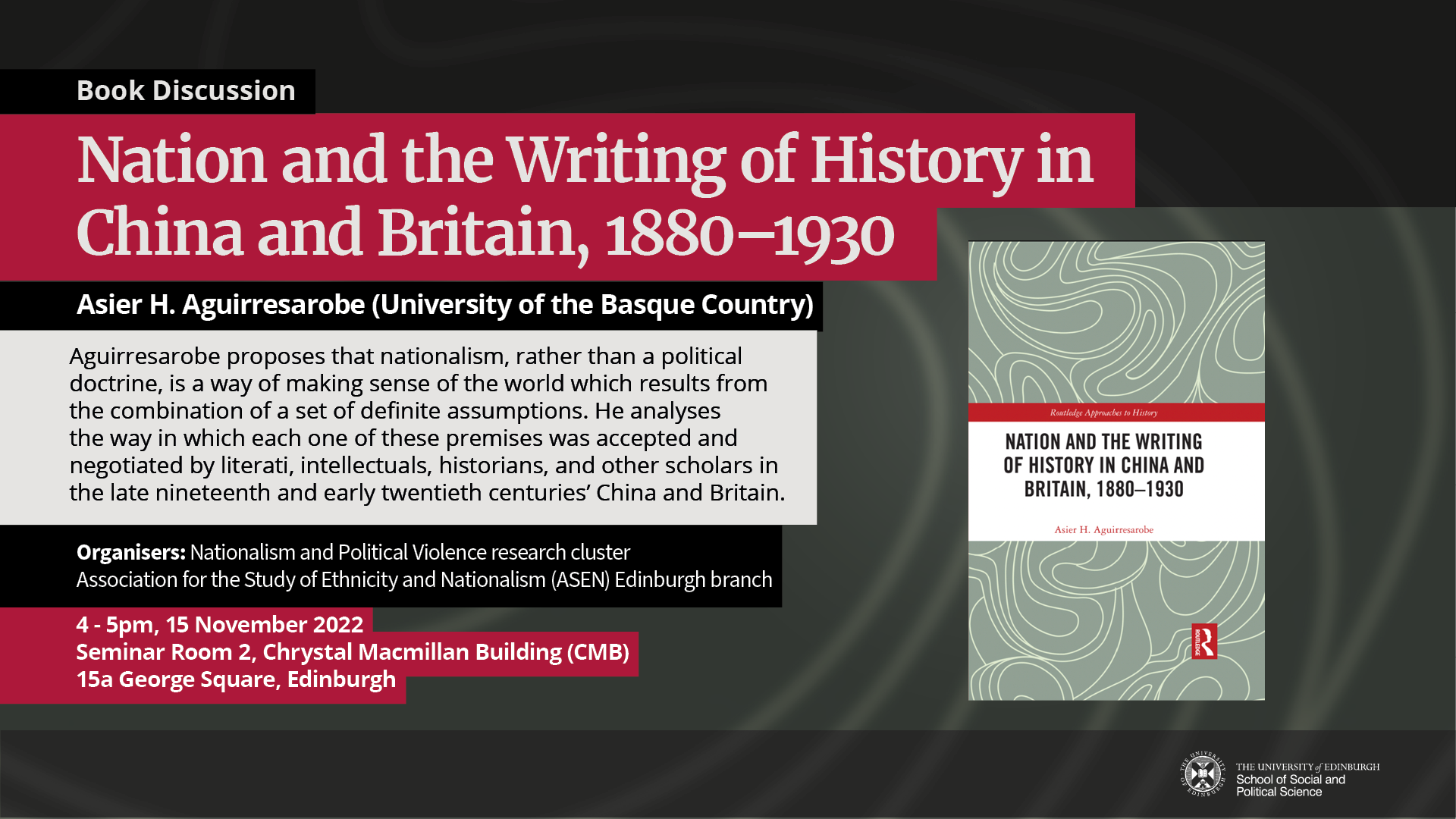 Asier H. Aguirresarobe (University of the Basque Country) will discuss the reception of the nationalist worldview and its effects on the practice of history in China and Britain.