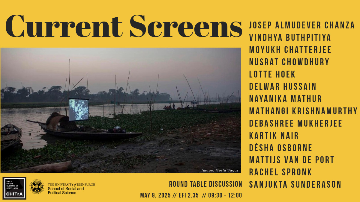 We live surrounded by screens. To understand contemporary culture and society we need a theory of the screen that is capable of crossing between disciplines, regions and histories. This roundtable brings together film scholars, media theorists, cultural anthropologists and critical theorists of screen culture in a cross-disciplinary dialogue. Thinking from South Asia we discuss the conceptual and empirical frames by which we can come to understand the screen as a carrier of form and an infrastructure of social life today.