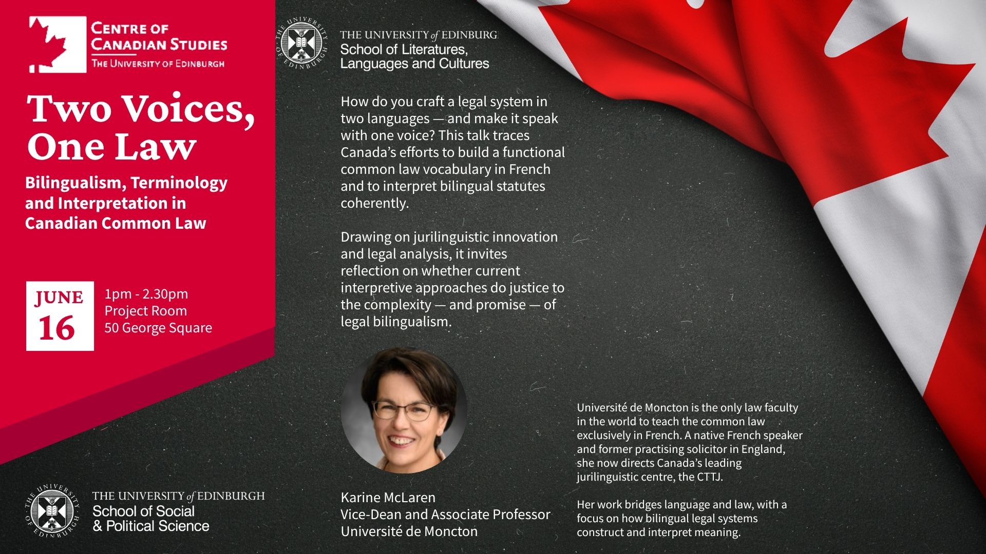 Canada’s legal system is officially bilingual — but giving equal expression to the common law in both French and English is far from straightforward. This talk explores two interwoven dimensions of this linguistic and legal challenge.